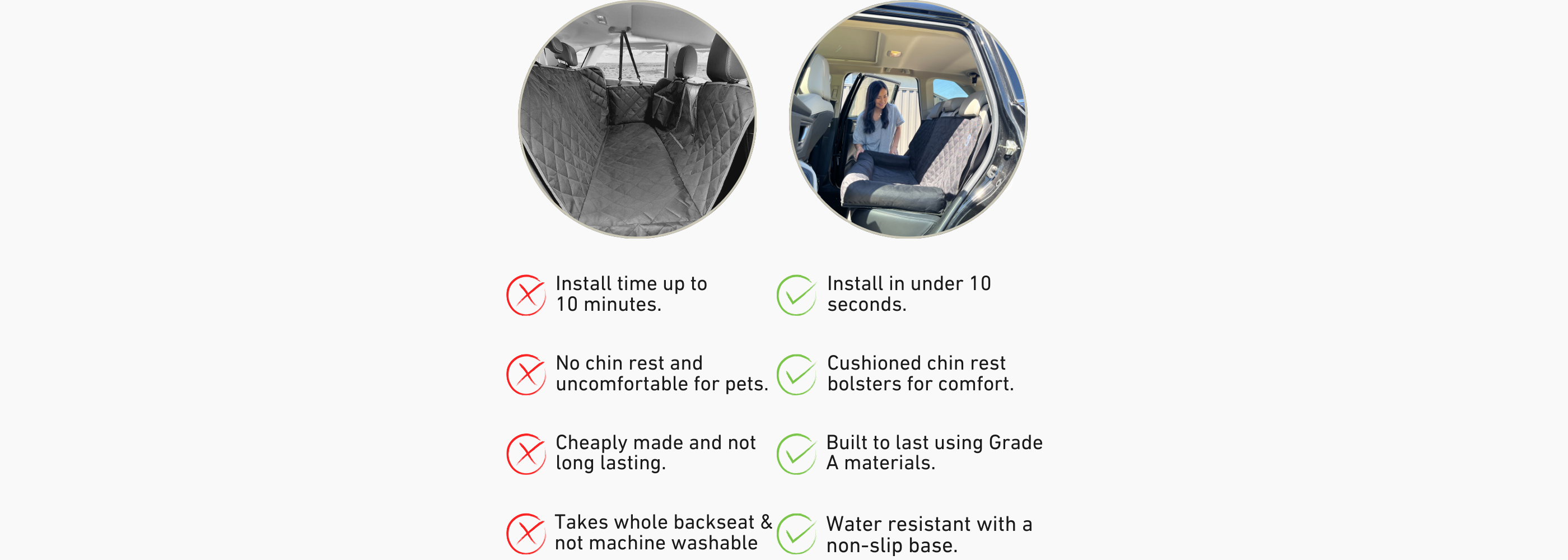 Premium Quality: Crafted with the highest quality materials, our backseat protector is designed to withstand the wear and tear of even the most adventurous dogs. It is made from a sturdy, water resistant fabric that protects your car seats from dirt, scratches, spills, and pet hair, making cleanup a breeze.